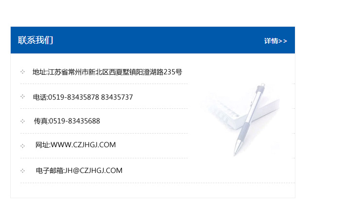 傳真:0519-83435688    郵編:213135    網址:WWW.czjhgj_com.yzruijin.com    電子郵箱:JH@czjhgj_com.yzruijin.com